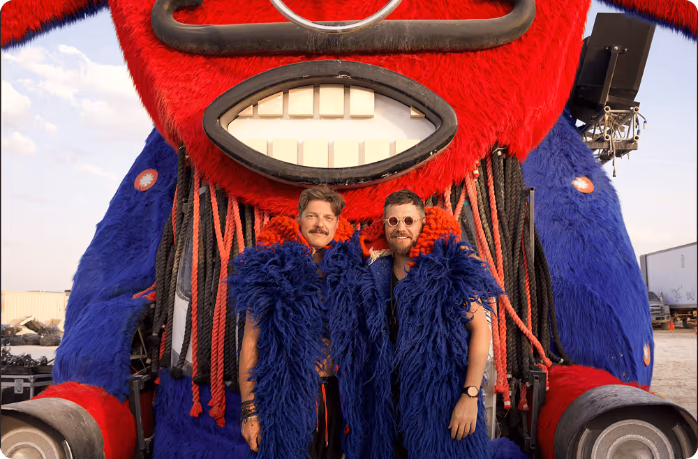 We bring the Blue Bull Art Car. The fe stival provide s the lineup and programming. Ideal for unique stage plac ements.